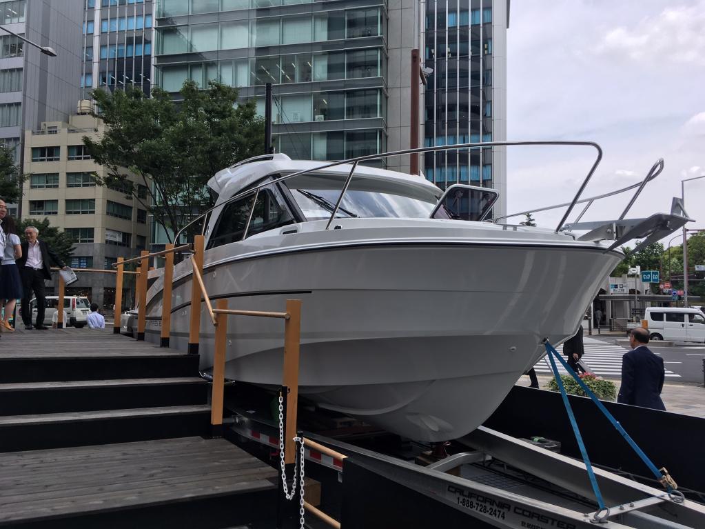 ホンダの船外機を搭載した「BENETEAU(ベネトウ)」社のクルーザーが、都会のド真ん中に突如として現れた。東京は青山のホンダ・ウエルカムプラザの玄関前に、6月14日(金)から18日(火)まで展示されるという。