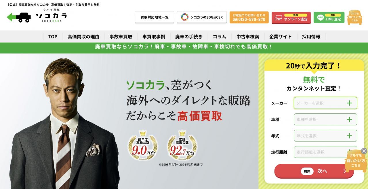 自社オークションや自社物流ネットワークで中間コストをカットできるので高価買取を実現。全国どこでも来店不要・電話一本で買取可能・手続きは無料なので忙しい方には特におすすめしたい廃車買取業者です。