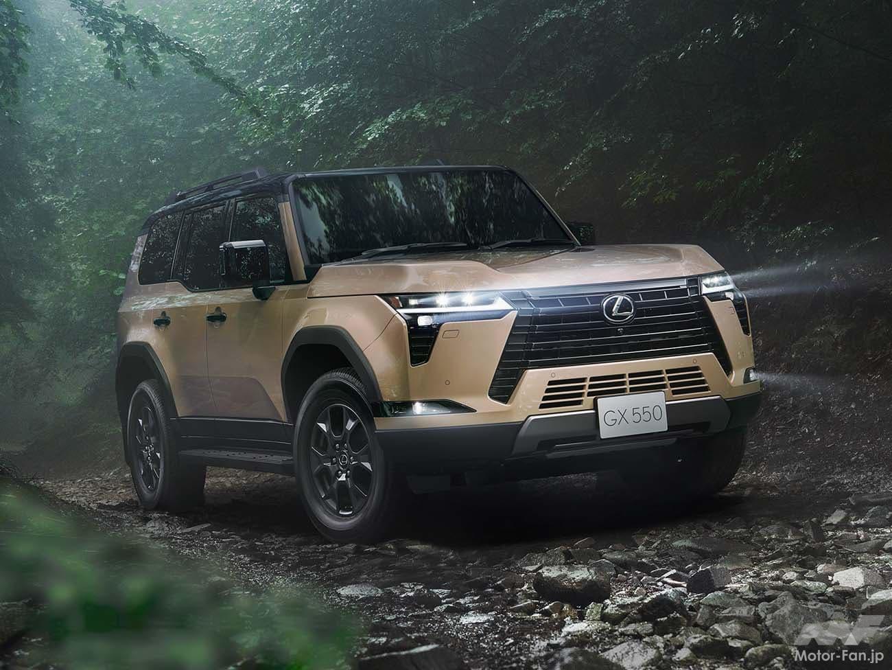 3眼フルLEDヘッドライト、フルLEDリアコンビネーションランプを採用。タイヤとホイールは、GX550「バージョンL」が265/50R22タイヤと切削光輝&ダークグレーメタリック塗装のアルミを組み合わせ、GX550「オーバートレイル+」は265/65R18タイヤとマットグレー塗装のアルミを採用する。