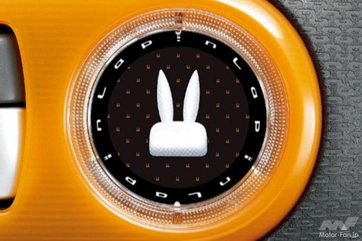 フランス語でうさぎという意味の「Lapin」を車名に取り入れ、女性ユーザーを意識したデザインや装備を持つアルトラパン。Xグレードのシート地にキルティング柄を採用し、おしゃれ雑貨の雰囲気を連想させるデザインをインテリアの随所に用いている。メーターのマルチインフォメーションディスプレイの表示にも、うさぎのキャラクターが現れるなど、女性を意識したこだわりは徹底している。