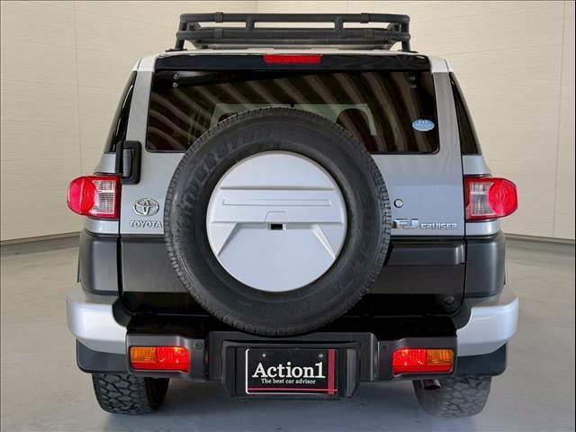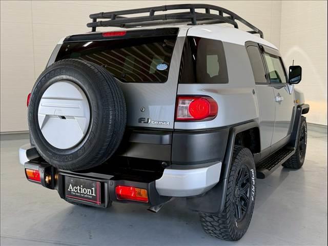トヨタ FJクルーザーベースグレード ルーフラック PREMIX17インチAW AMPタイヤホワイトレター アルパインディスプレイオーディオ バックカメラ A-TRAC リアソナー リアフォグ サイドステップ キーレスキー 背面タイヤ