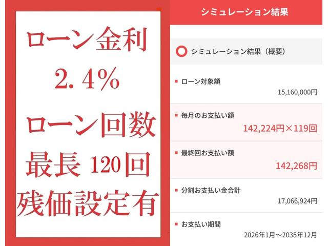 | 法定整備について | 全国納車可能。車検 令和9年10月14日迄 総額表示には延長保証継承・車庫証明・名義変更・環境性能割・自動車税・希望ナンバー費用が含まれております。 |
