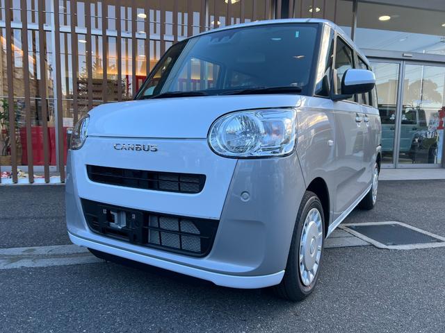 ダイハツ ムーヴキャンバスストライプスX ・届出済未使用車・2WD・CVT・両側電動スライドドア・UVカットガラス・プッシュスタート・バックカメラ・ステアリングリモコン・衝突軽減ブレーキ・コーナーセンサー