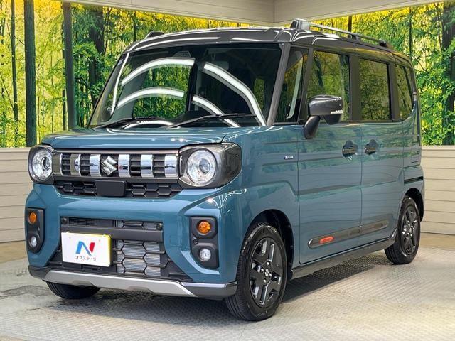 スズキ スペーシアギアハイブリッドXZ 届出済未使用車 両側電動ドア 衝突被害軽減システム レーダークルーズ コーナーセンサー スマートキー LEDヘッド 純正14インチアルミ オートハイビーム 車線逸脱警報 オートライト オートエアコン