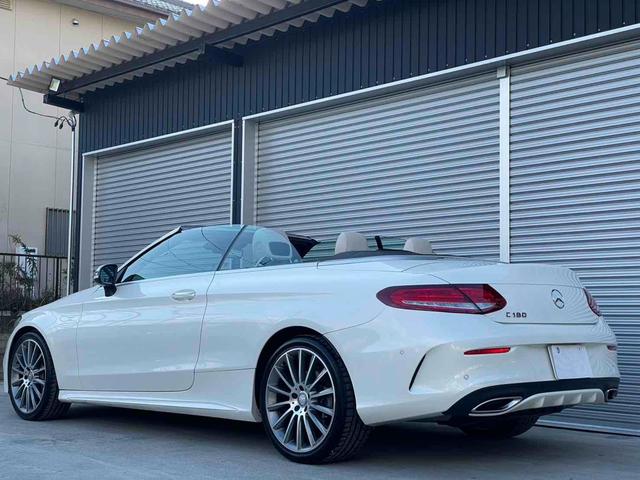 メルセデス・ベンツ CクラスC180カブリオレスポーツ ホワイトレザー ブラック幌 レザーエクスクルーシブpkgAMGアルミホイールシートヒーター エアスカーフ スマートキー プッシュスタート LEDヘッドライト