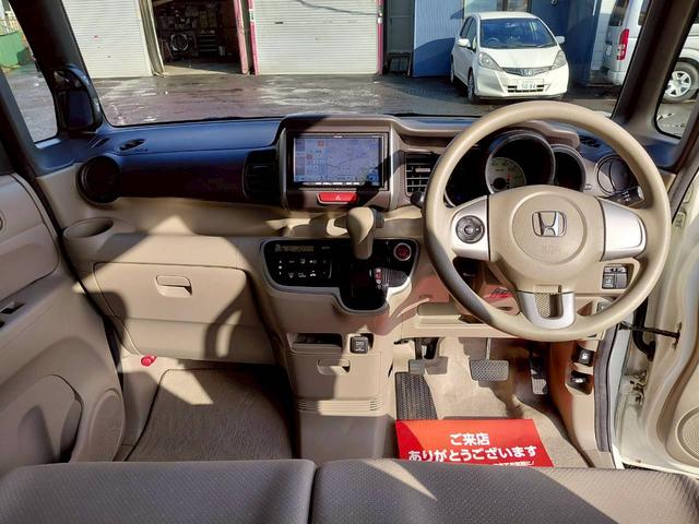 ホンダ N-BOX+G・Lパッケージ 4WD 左パワースライドドア フルセグテレビ付ナビ スマートキー アイドリングストップ 横滑り防止 社外アルミ ライトレベライザー ミラーヒーター