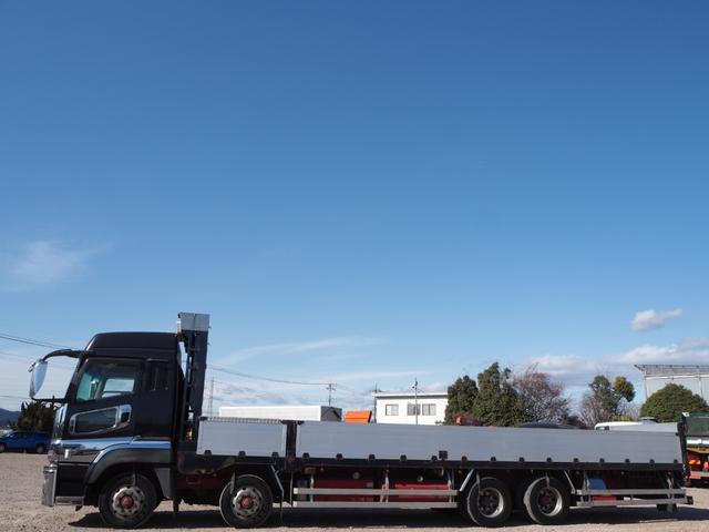 三菱ふそう スーパーグレート 4軸低床 アルミブロック平ボディ 積載13.7t 床面木板 造りボディ 2デフ リアエアサス デフロック 五方開 12800cc 内フック(丸環) スタンション穴 ステンレス鳥居シート受け