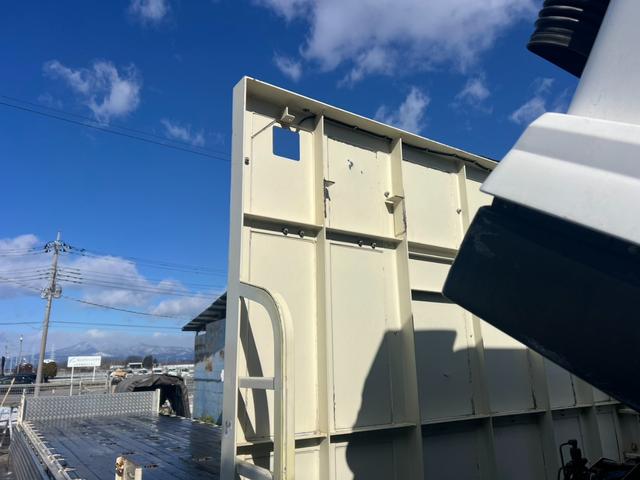 三菱ふそう スーパーグレート 4軸低床 山田ボディ製アルミブロック 平ボディ 積載14t板張り 内フック付き スタンション付き NOx・pm適合 2人乗り キセノンヘッドライト ベット付き リアエアサス ミッション7速(3ペダル)