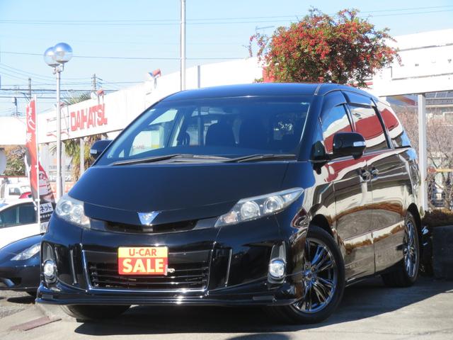 トヨタ エスティマアエラス /ワンオーナー/8人乗り/エアロパーツ付/両側パワースライドドア/純正フルセグTV付HDDナビ/リアフリップダウンモニター/HIDヘッドライト/社外18インチアルミ/禁煙車/記録簿付/修復歴なし/