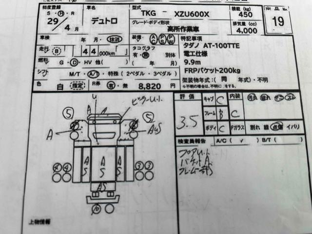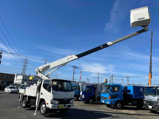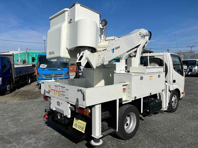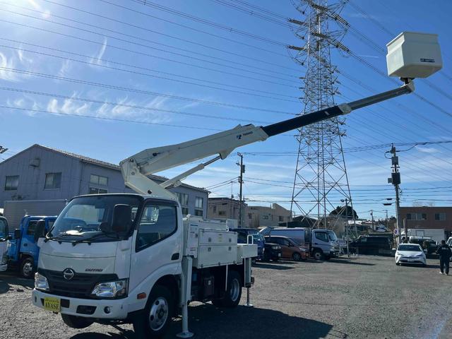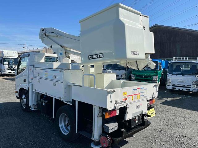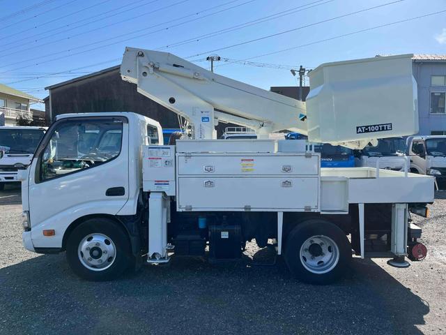 日野 デュトロ電工仕様9.9m高所作業車 AT車 工具箱付 電気工事仕様高所作業車 AT車 SDナビ バックカメラ付 タダノ製AT-100TTE 最大地上高9.9m 最大作業半径8.9m 工具箱付 可動アワメーター4200時間 ブーム自動格納機能