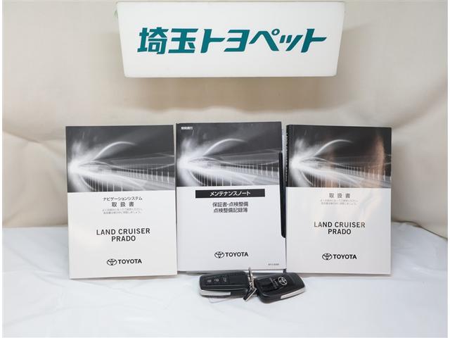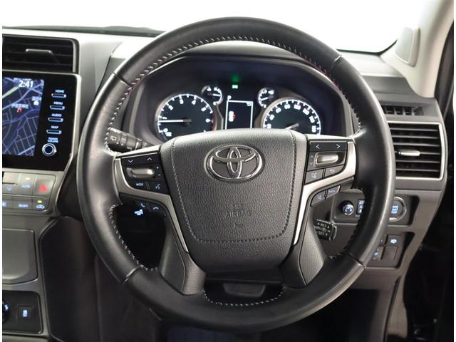 トヨタ ランドクルーザープラドTXLPM レーダクルーズ ブルートゥース 踏み間違い防止装置 サイドカメラ 360度カメラ フロントカメラ セキュリティー シートヒータ 電動パワーシート USB接続 レーンキープ アルミ 黒革シート キーレス