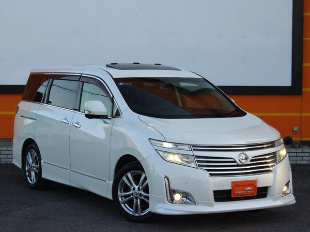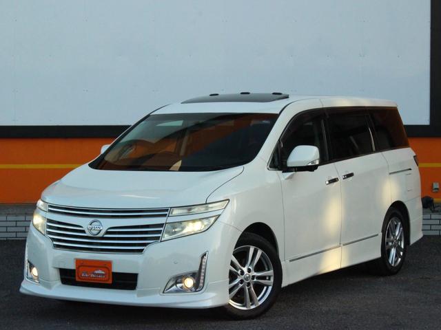 日産 エルグランド250ハイウェイスター 両側電動スライドドア・Wサンルーフ・ハーフレザーシート・Bluetooth接続・フリップダウンモニター・アラウンドビューモニター・バックカメラ・エアロ・HIDヘッドライト・インテリキー