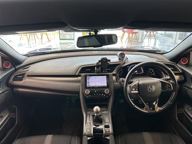 ホンダ シビックハッチバック ホンダセンシング 純正ナビ7インチ 社外ターボタイマー 社外フロントスポイラー 社外リヤスポイラー フォグ サイドバイザー カーボンミラーカバー プッシュスタート スタッドレス積み込みあり クルーズコントロール