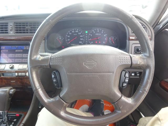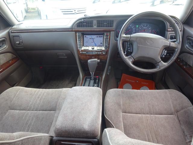 日産 セドリックブロアムVIP 平成14年式車検令和9年7月メーター交換歴あり修復歴無し4速ATキーレスオートエアコンパワステフル装備純正マルチワンセグTVETC全席パワーシートエアサスペンションコーナーポール純正15インチアルミ