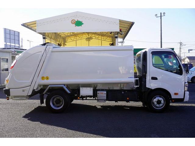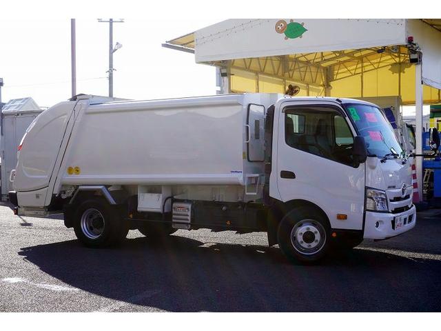 日野 デュトロワイド パッカー車 新明和製 プレス式 7.4立米 連続動作 積載2750kg 汚水タンク 防臭扉 バックカメラ ETC LEDヘッドライト フォグランプ 電動パーキングブレーキ 左電格ミラー 坂道発進補助 衝突軽減ブレーキ クリアランスソナー 6速MT 塵芥車