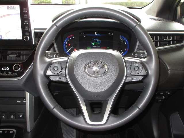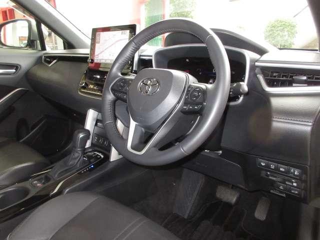 トヨタ カローラクロスハイブリッド Z パノラマルーフ寒冷地1オナ純正9型DAナビ全周囲カメラPCS/LTA/BSM/RCTA/PKSB/追従クルーズ黒半革電動暖シート電動Rゲート純正18AW