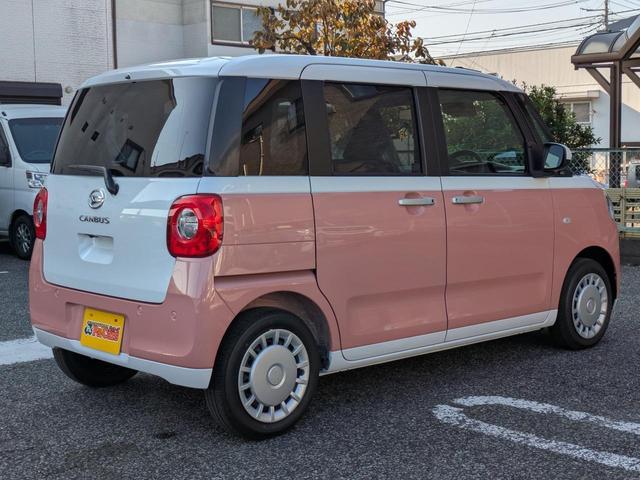 ダイハツ ムーヴキャンバスストライプスX 届出済未使用車 オートライト バックカメラ USB ステアリングオーディオスイッチ リアパーキングセンサー オートエアコン プッシュスタート スマートキー 電動格納ミラー 左右電動スライドドア 禁煙車