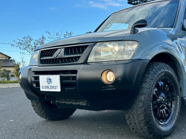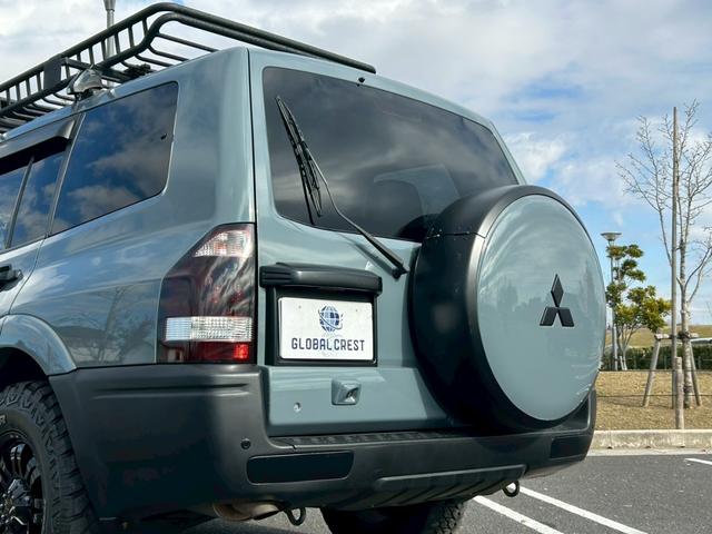 三菱 パジェロアクティブフィールドエディション 修復歴無 4WD 7人乗 ブルーグレー全塗装 TUFREQベースキャリア・ルーフラック LEXXEL17AW 純正ナビ・Bカメラ フリップダウンモニター 黒革シート・シートヒーター ETC キーレス