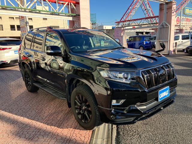 トヨタ ランドクルーザープラドTX Lパッケージ・ブラックエディション 4WD TRDエアロ サンルーフ ブラックレザーシート 9インチナビ TV バックカメラ ドラレコ型デジタルインナーミラー ETC レーダークルコン レーンアシスト クリアランスソナー ルーフレール