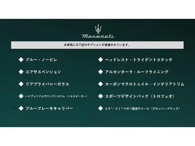 マセラティ グラントゥーリズモトロフェオ ワンオーナー ICEレザー ヘッドレストト・ライデントステッチ カーボンマクロトゥイルトリム ハイプレミアムサウンドシステム(19スピーカー) 20/21ペガソ鍛造ホイール(グロッシーブラック)
