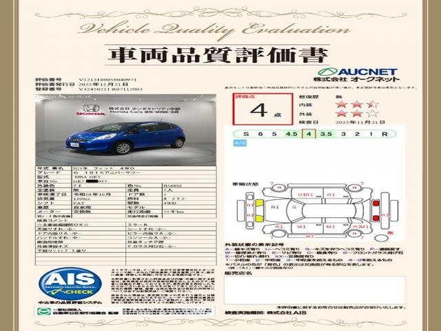 ホンダ フィットG・10thアニバーサリー 1年保証 ワンオーナー 純正ナビ TV Rカメラ 音楽機器接続 ETC アルミ スマートキー 盗難防止装置 整備記録簿 AAC Wエアバッグ DVD 4WD ABS バックカメラ