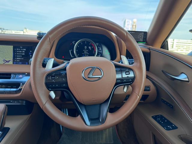 LC500 Sパッケージ モデリスタエアロ オレンジブレーキキャリパー セーフティシステムプラス 純正21インチアルミ 格納式アクティブリアスポイラー オーカーハーフレザーシート 革巻きステアリング パドルシフト 純正SDナビ