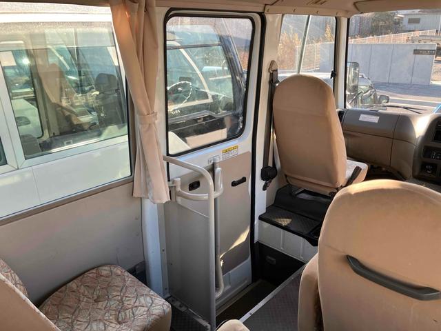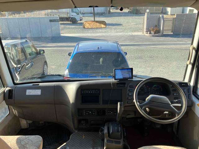 マイクロバス スーパーロング 14人乗り レザーシート リクライニング機能 床木張り 自動スライドドア(手動切り替え可) 社外ナビ バックモニター TVモニター有 プレヒーター有 後方観音扉