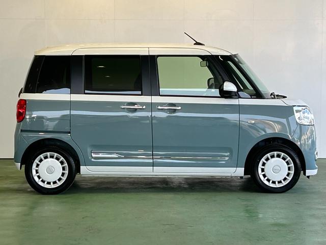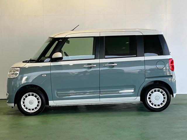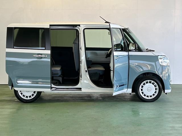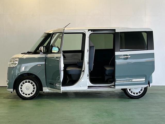 ダイハツ ムーヴキャンバスストライプスG ディスプレイオーディオ 電動パーキング 両側電動スライドドア プッシュボタンスタ-ト 衝突被害軽減ブレーキ コ-ナ-センサ- アイドリングストップ機能 シ-トヒ-タ- パノラマモニタ-