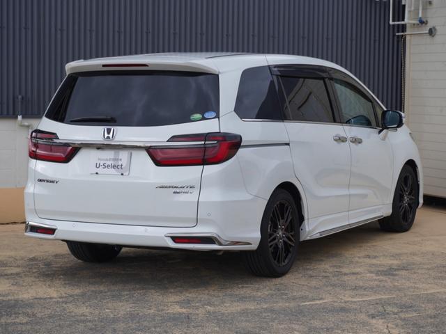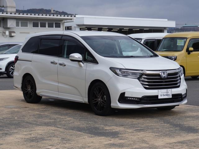 ホンダ オデッセイハイブリッドe:HEVアブソルート・EX ワンオーナー車 10インチナビ(純正用品VXU-217DYi) リヤ席モニター 全周囲カメラ ドラレコ ETC2.0 両側電動スライドドア シートヒーター Bluetooth LEDオートライト