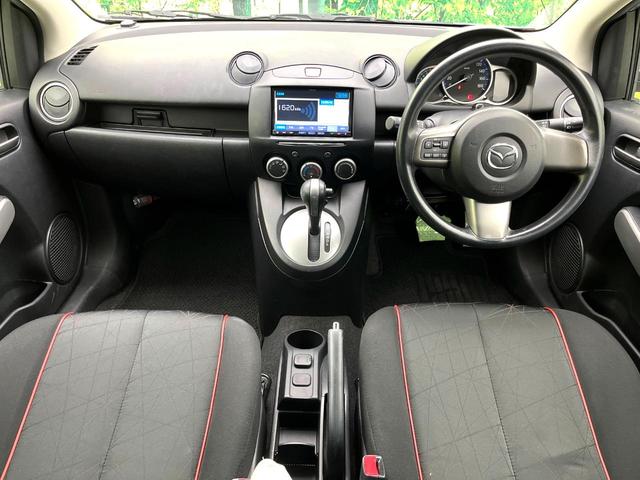 マツダ デミオ13-スカイアクティブ スマートスタイリッシュ 純正SDナビ 衝突被害軽減システム 禁煙車 ドラレコ スマートキー ETC 純正14インチアルミ オートエアコン Bluetooth フルセグ