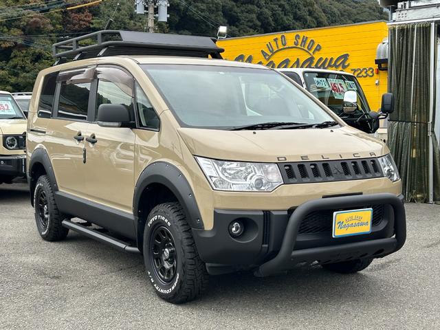 三菱 デリカD:5D パワーパッケージ 両側パワースライドア ディーゼルターボ リフトUP オバフェン バンパーガード ジーアイギヤ製ルーフラック リアラダー サイドステップ アルパインナビ フリップダウンモニター ETC シートカバー
