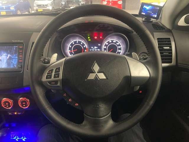 三菱 アウトランダーローデスト24G 4WD 純正ナビ TV ETC パドルシフト 横滑防止装置 HDDナビ 3列シート 4WD キーレス ETC オートエアコン アルミホイール ナビTV ワンセグ 寒冷地仕様 盗難防止 Sキー