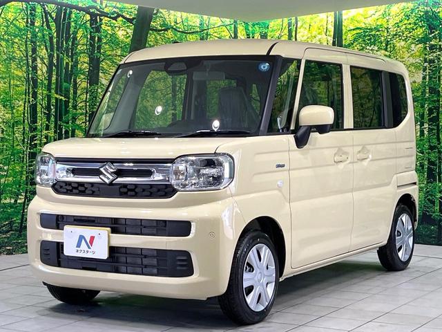 スズキ スペーシアハイブリッドG 届出済未使用車 衝突被害軽減 LEDヘッド クリアランスソナー オートハイビーム オートエアコン スマートキー ステアリングスイッチ 横滑り防止装置 アイドリングストップ ヘッドライトレベライザー