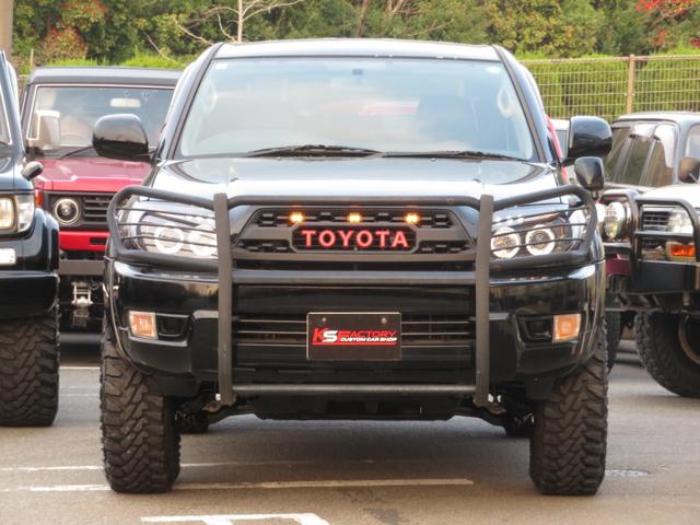 トヨタ ハイラックスサーフSSR-X アメリカンバージョン 全塗装済黒 イカリング付ヘッドライト TOYOTAグリル LEDテール グリルガード リフトUP 社外AW MTタイヤ 社外ナビ バックカメラ ETC プッシュスタート シートカバー スマートキー