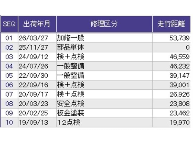 - また、修復歴・法定整備・保証の有無ならびに詳細内容につきましても、必ず各販売店にご確認いただきますようお願いいたします。