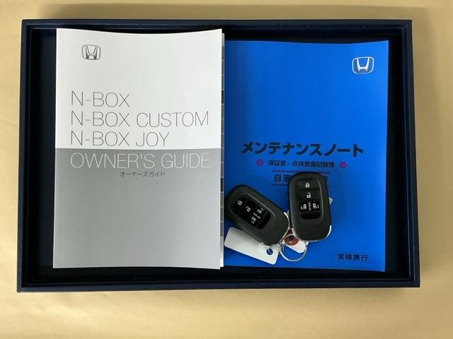 ホンダ N-BOXジョイベースグレード ドラレコ ナビ Rカメラ ブルートゥース ECON 整備記録簿 パワーウインドウ 追突軽減ブレーキ 禁煙 サイドエアバッグ エアバッグ USB Dレコ 盗難防止装置 ベンチシート キーレス AAC