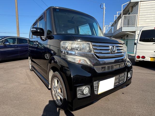 ホンダ N-BOXカスタムG・Lパッケージ 車検令和9年12月 ナビ 左側パワースライドドア 横滑り防止装置 アイドリングストップ オートエアコン ベンチシート ABS HID プッシュスタート スマートキー 盗難警報装置