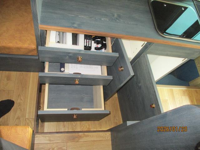 キャンピングカー/8ナンバー/5人乗り/テーブル/シャワールーム/ベット/シンク/電子レンジ/テレビ/冷蔵庫/クーラーボックス/棚/ソファー/サイドオーニング/外部電源/ETC/Bluetooth/