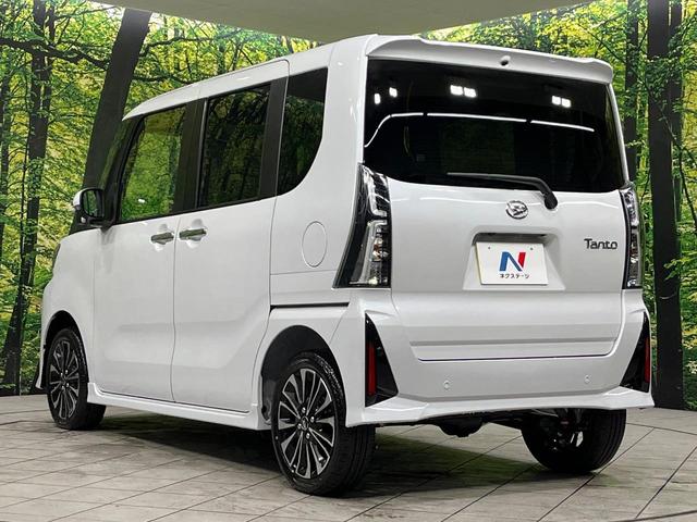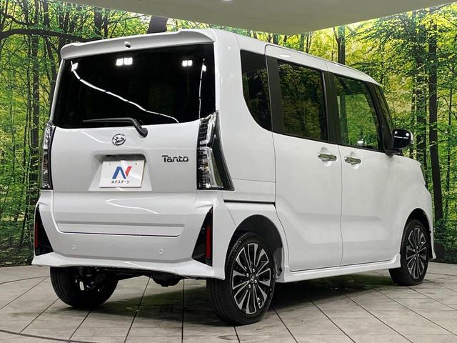 ダイハツ タントカスタムRS 4WD ターボ 届出済未使用車 両側電動ドア スマートアシスト ハーフレザーシート スマートキー LEDヘッド 純正15インチアルミ シートヒーター オートライト オートエアコン LEDフォグ