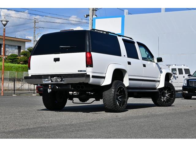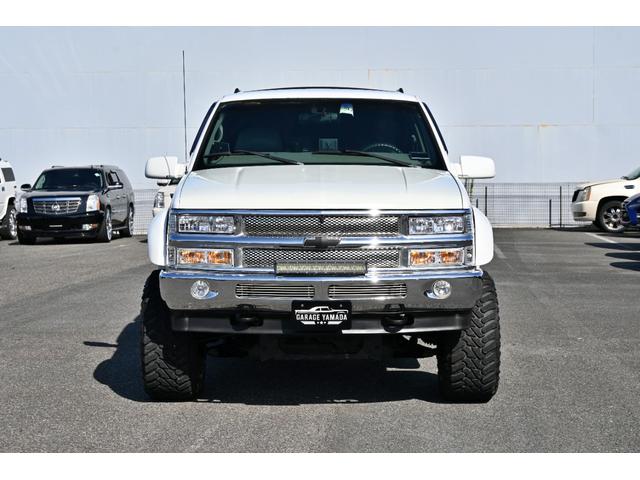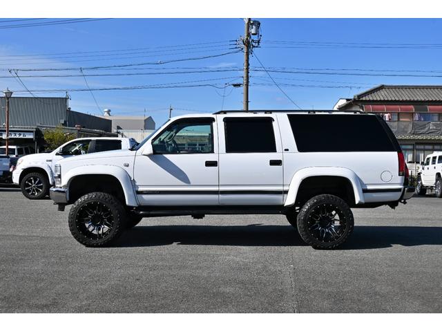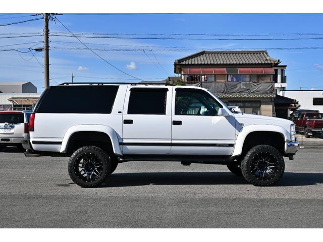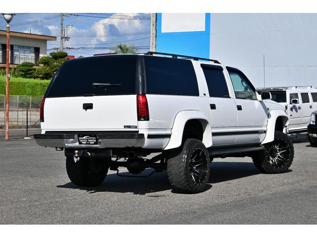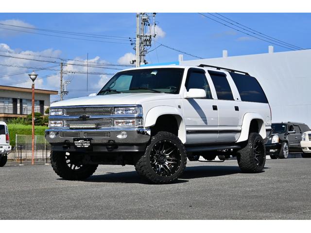 シボレー シボレーサバーバン 4WD 1999y最終モデル ベージュ本革シート オーバーフェンダー リフトアップ XF-offroad20インチAW 33x12.50R20マッドタイヤ リフトアップ サイドステップ フルセグナビ