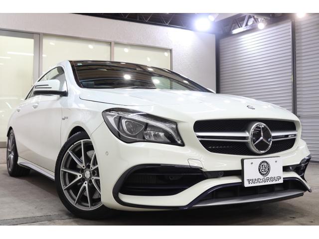 メルセデスAMG CLAクラスCLA45 4マチック レーダーSP 後期型 黒本革 パノSR 純正ナビTV スマホ連携 Bカメラ PTS ダイナミックS ハンズフリーA AMG強化ブレーキ AMGエアロ&18AW&ライドCサス LEDライト 2年保証付