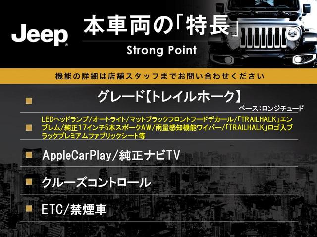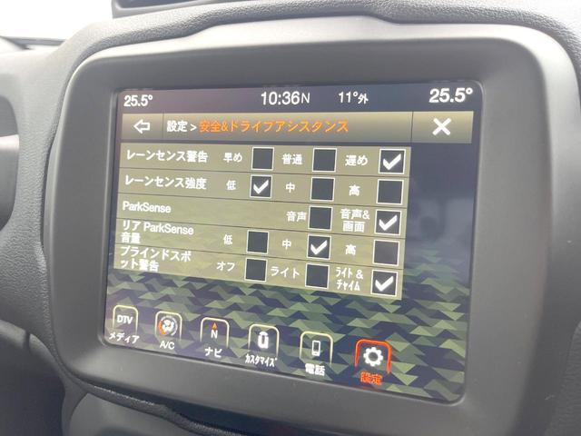 クライスラー・ジープ ジープ・レネゲードトレイルホーク 1オーナー 純正ナビTV AppleCarPlay対応 リアビューカメラ クルコン レーンキープ ブラインドスポット 純正17インチアルミ LEDヘッドランプ オートライト ETC 禁煙車