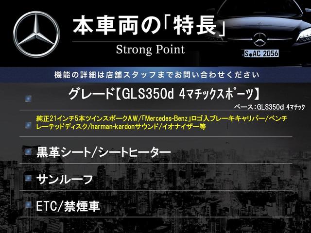 メルセデス・ベンツ GLSGLS350d 4マチックスポーツ サンルーフ 黒革シート 純正ナビTV 360度カメラ harmankardon レーダーセーフティPKG パワーシート シートヒーター 純正21インチAW LEDヘッドランプ ETC 禁煙車